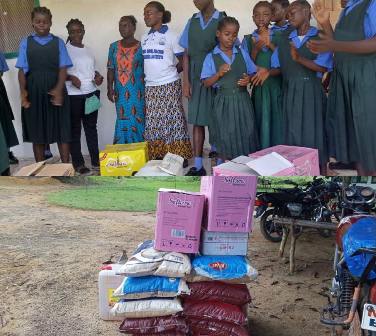 The items donated to the disable community of Zwedru include 6 bags of rice, 1 tin of three-galls vegetable oil, 2 bags table salt, 1 bag of toile tissue, while the donation at Presbyterian School were 5 cartoons of sanitary pads, 1 cartoon of chlorides, a cartoon of bath soap, and 1 cartoon of klin power soap.