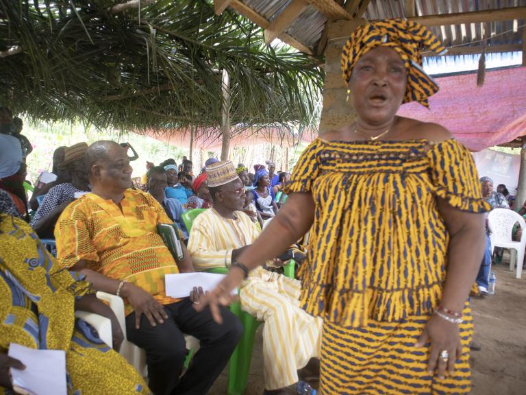 Jartu B. Johnson, a former FGM practitioner who is leading the change in Gbarma, now a Change Champion working hand-in-hand with DOMAFEIGN is the brain behind the Art School in her community.